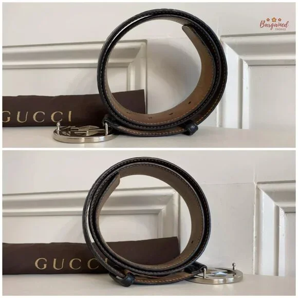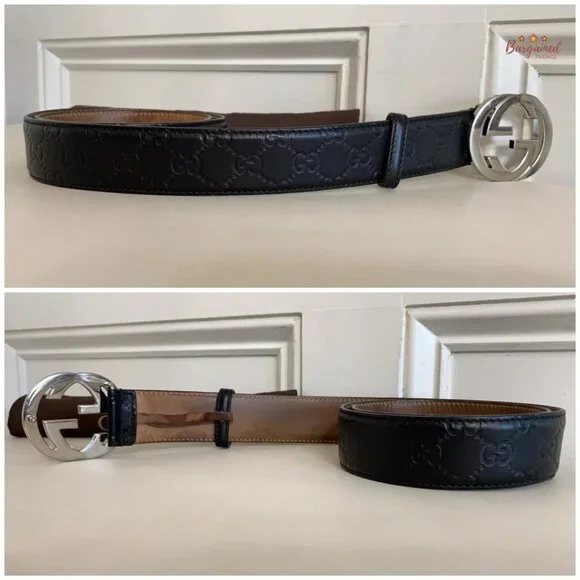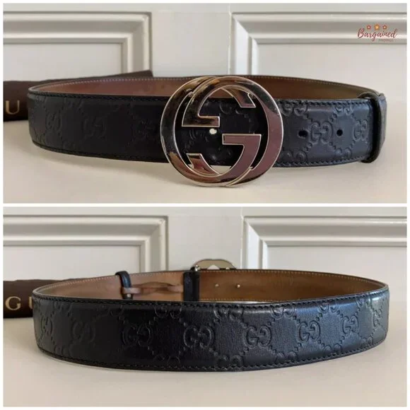 Authentic Gucci Black Guccissima Leather Silver Interlocking G Buckle Belt 85/32PRODUCT DETAILS:▶Condition is Pre-owned▶Includes Dust Bag▶Exterior Leather: Minor Wear▶Underside Leather: Dirt & Marks▶Hardware: Minor Scratches▶Size: 85/32▶5 Holes▶Waistline from 32" up to 36"▶Adjustable ▶Closure: Silver Interlocking G Buckle ▶Hardware Color: Silvertone ▶Date/Authenticity Code: 114984 - 525040▶Country/Region of Manufacture: Italy▶Dimensions: 40"L x 1.5"W▶Leather to Leather Length: 37.5"▶Reference Number: 111724-0170RB102